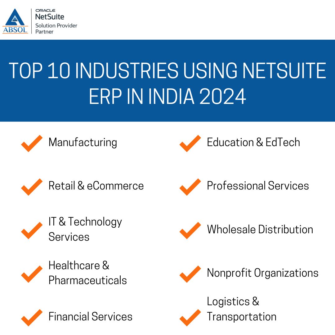 Here are the top 10 industries in India using NetSuite ERP in 2024: